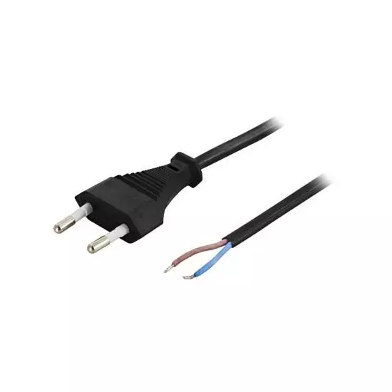 DELTACO apparatkabel, ojordad, CEE 7/16 öppen ände, 2,5 A / 250 V, 2