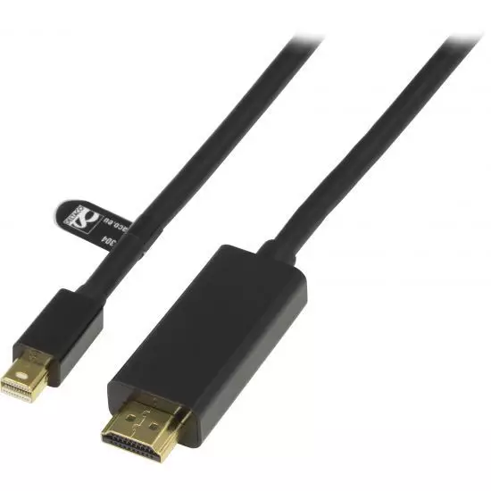 DELTACO mini DisplayPort till HDMI-monitorkabel med ljud, 20-pin ha-19-pin ha, 1m, svart