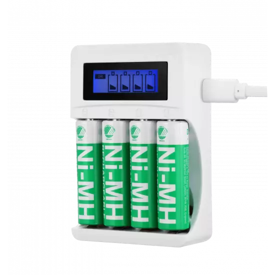 Denna produkt inkluderar 4x AA uppladdningsbara batterier. Laddar AAA- och AA-batterier snabbt, effektivt och säkert. Kan ladda AA- och AAA-batterier säkert och samtidigt. 1 till 4 batterier kan laddas samtidigt. LED-displayen hjälper dig att hålla reda på laddningsstatus och felmeddelanden som inkompatibla batterityper. Lätt att använda, sätt i batterierna och laddningen startar omedelbart. Displayen visar när batterierna är fulladdade.