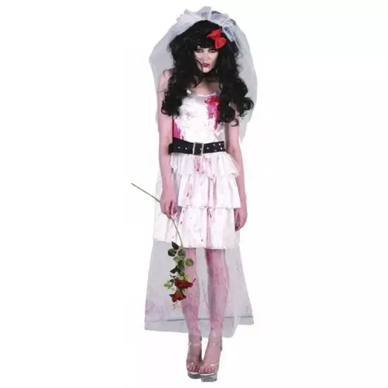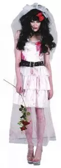 Den här bruden gick ett mycket tragiskt öde till mötes, kanske är hon hämndlysten? I dräkten ingår klänningen, halsbandet, bältet och slöjan.