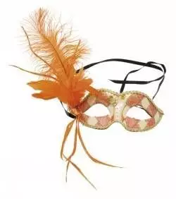 Med denna eleganta ögonmask med sidofjäder i orange kommer ingen att känna igen dig på maskeraden!